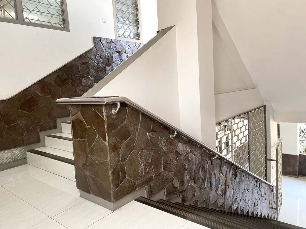 Tekstur batu alam juga kerap diaplikasikan pada pilar, pagar, dan area taman untuk menciptakan nuansa yang lebih natural. Permukaannya memberikan karakter visual yang selaras dengan elemen outdoor seperti tanaman dan batu hias. Dengan teknik yang tepat, hasilnya mampu memperkuat estetika ruang luar tanpa memerlukan perawatan kompleks.